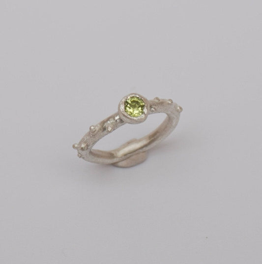 Silver Ring with Peridot and Rosary Dot Detail – Unique Piece | New Faith