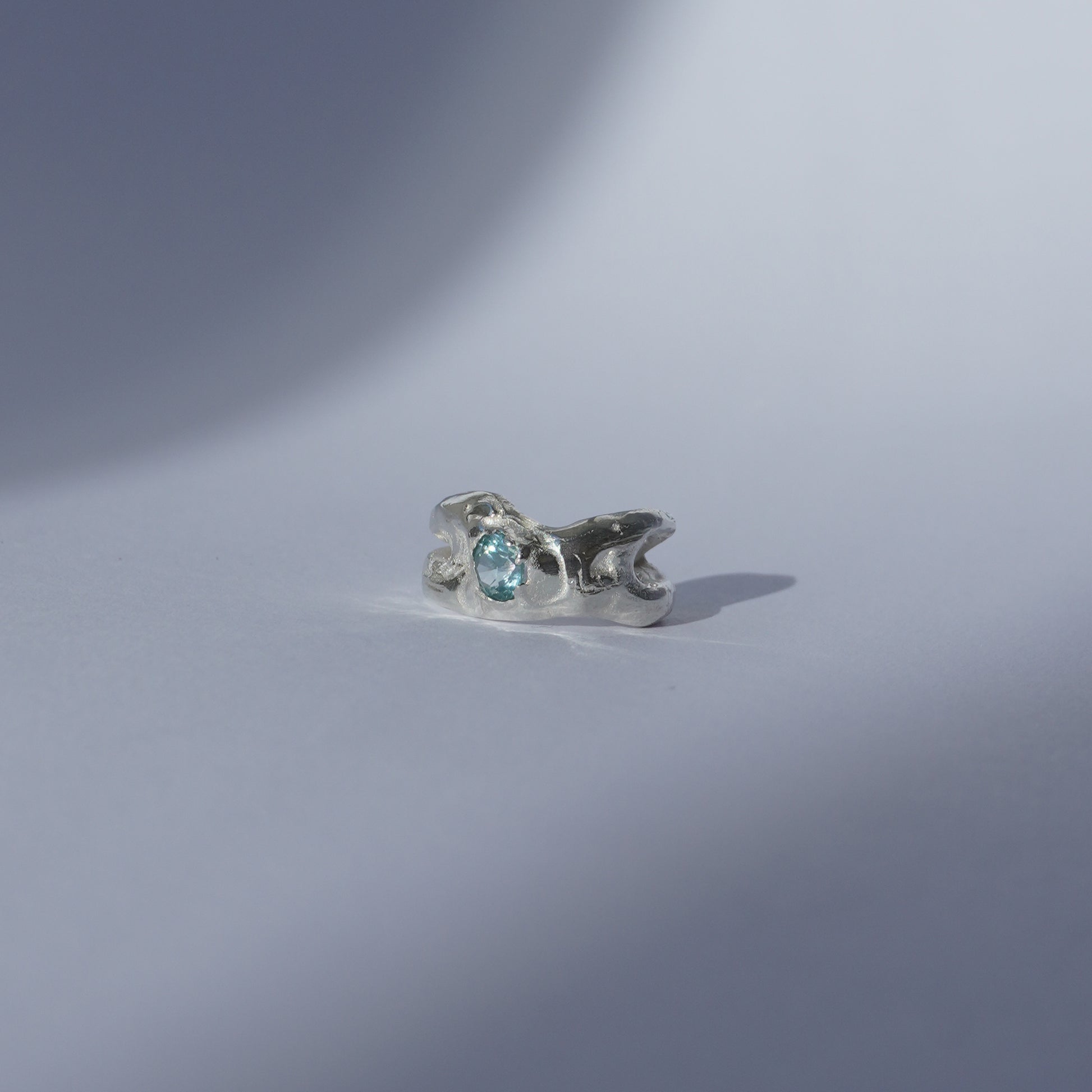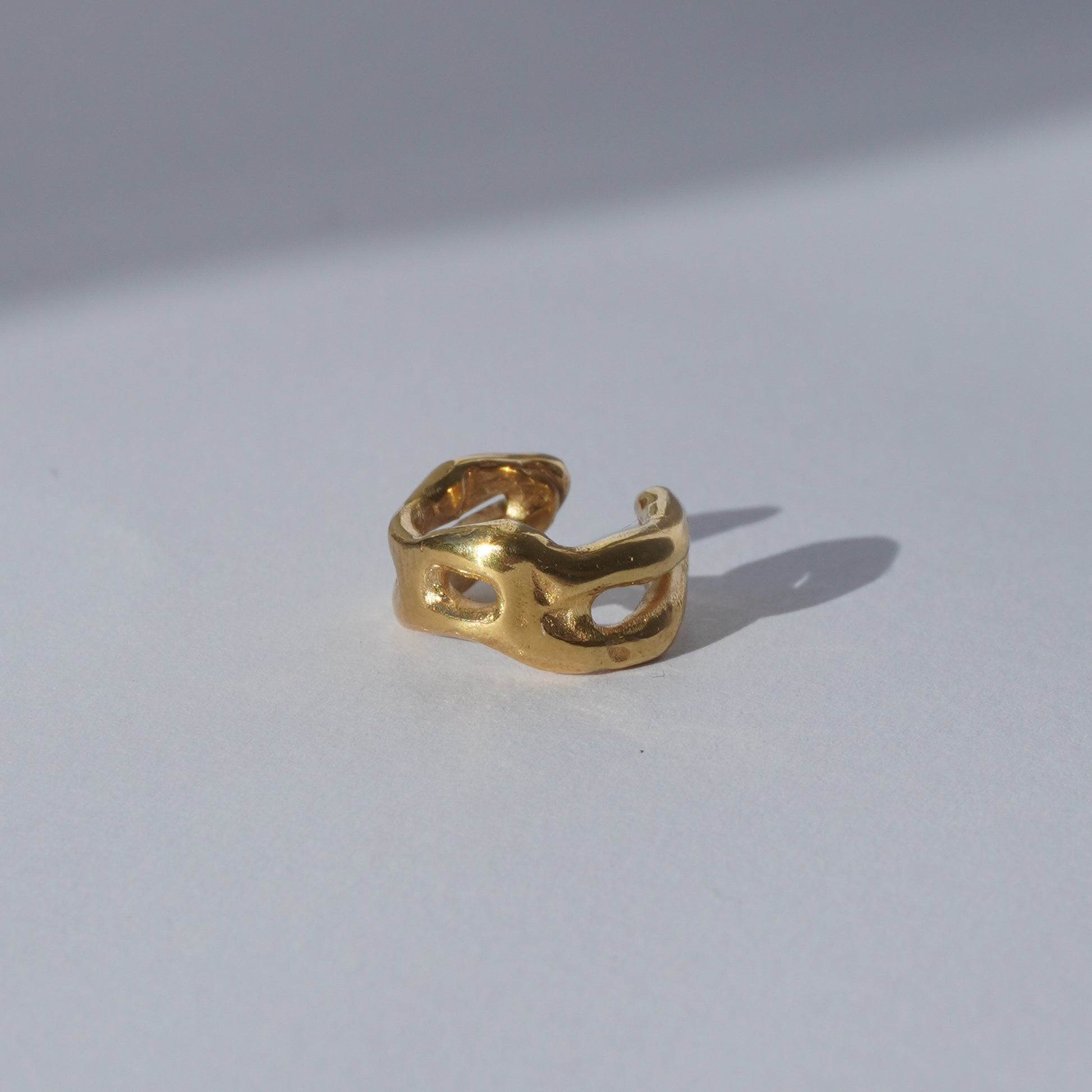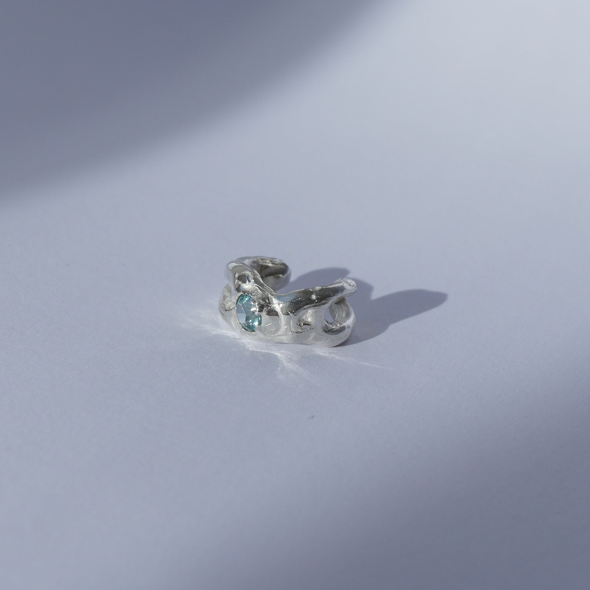 Earcuff with an organic, openwork silhouette inspired by natural, fluid shapes. Available in both silver and gold-plated finishes, with optional stone that add a subtle touch of color and light.