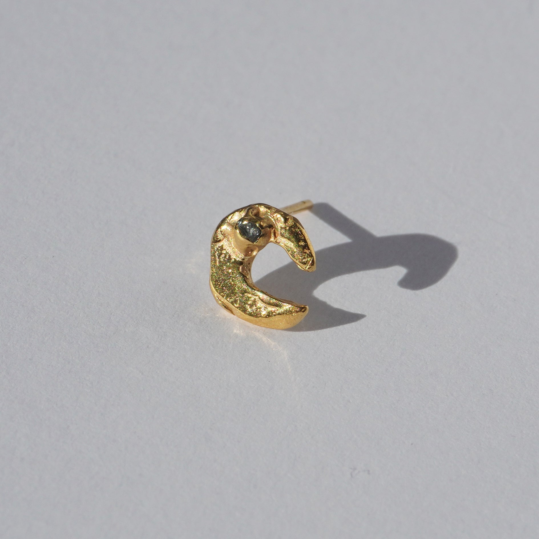 Echi iridescenti - Small Moon Stud Earring with a Stone