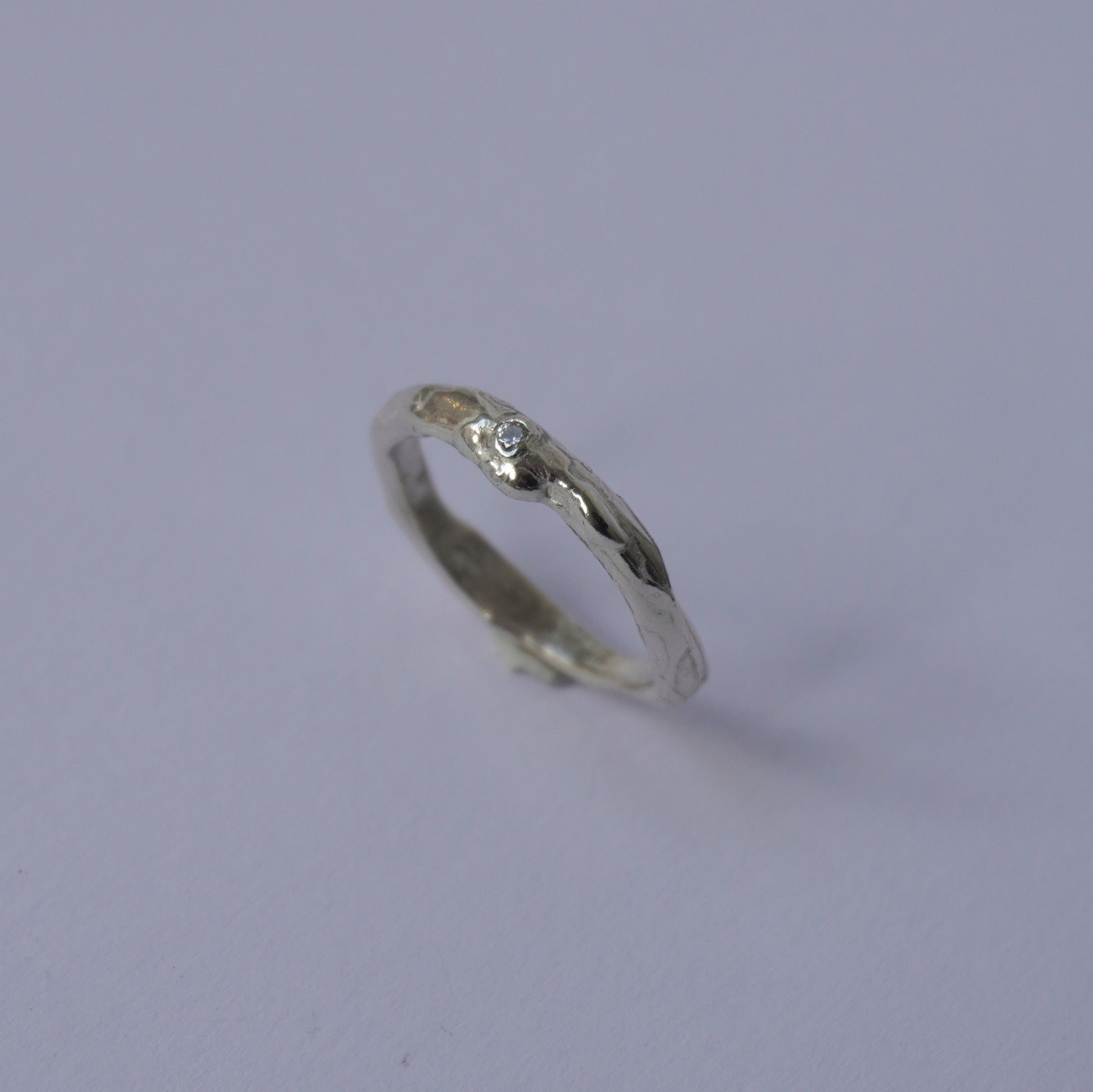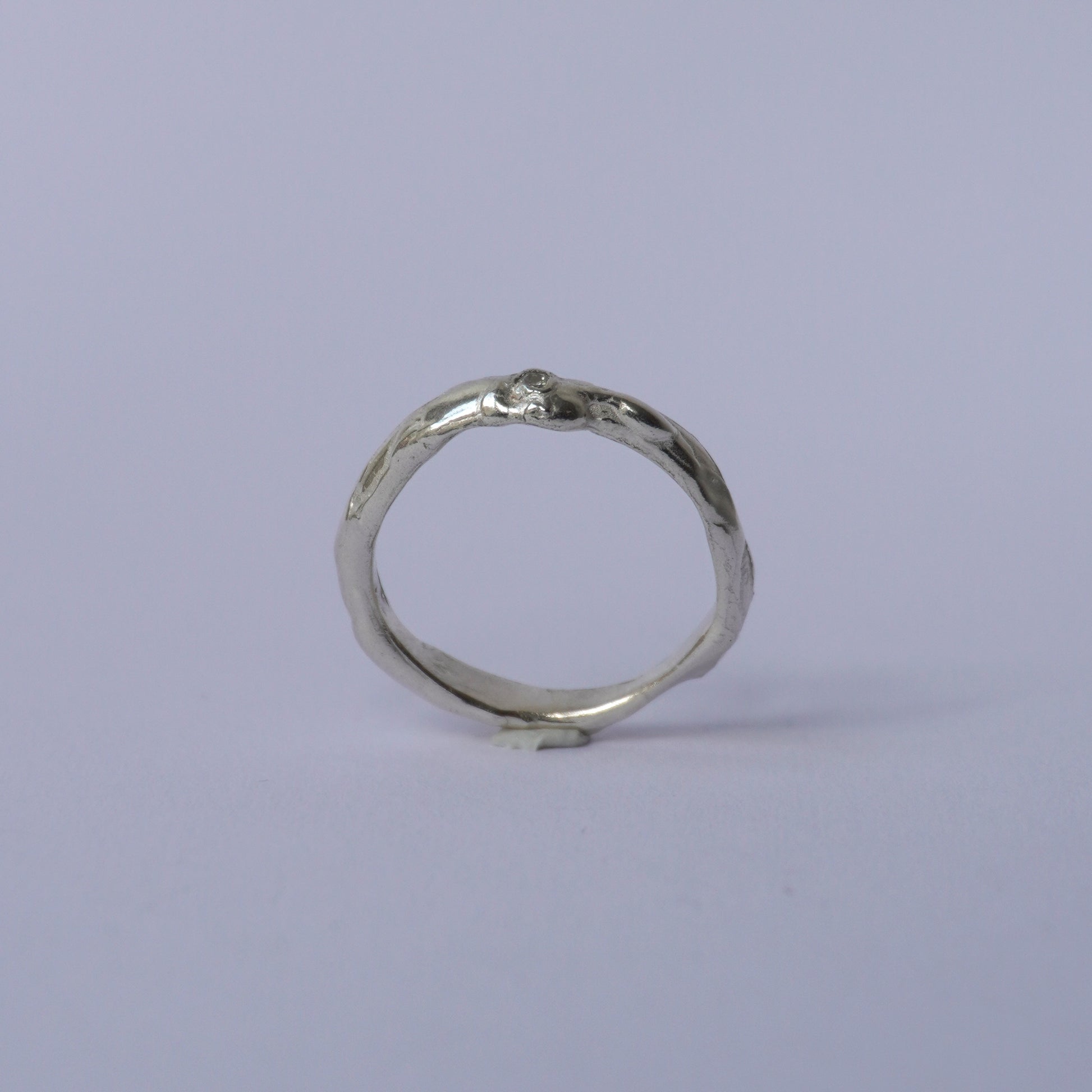 This one-of-a-kind ring is cast using the lost-wax technique and shaped into an organically textured form.